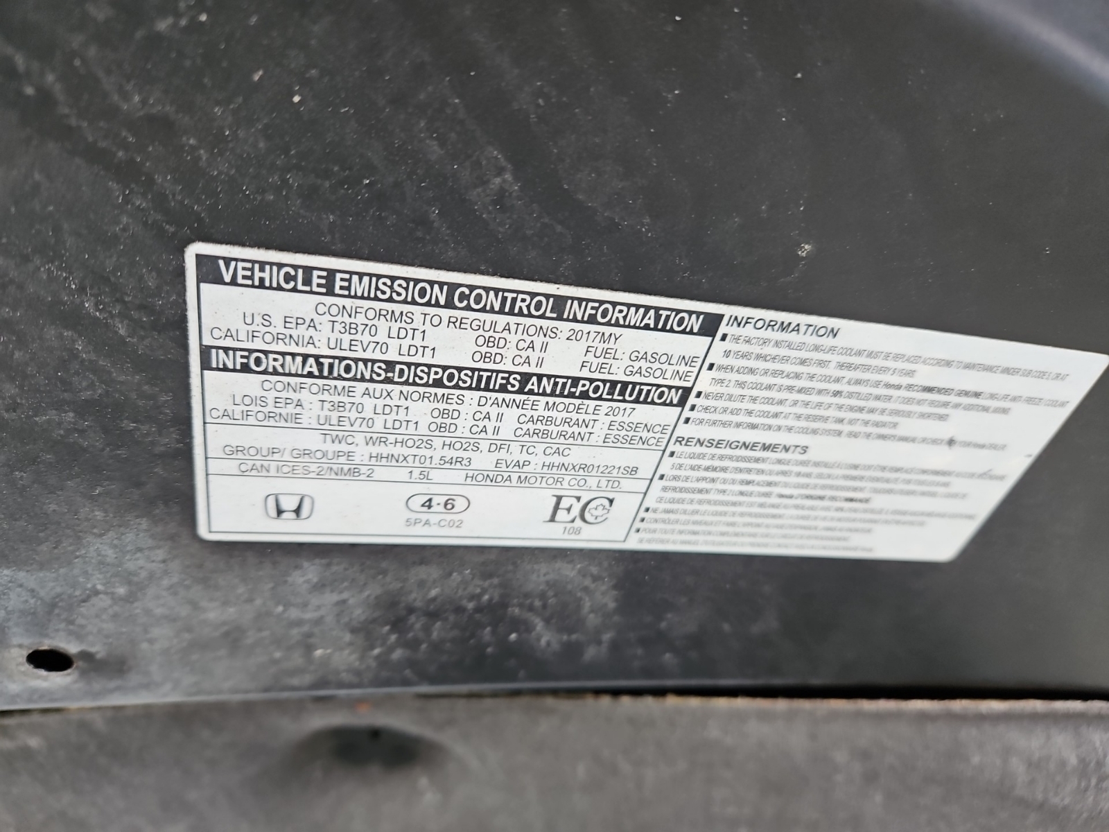 Vin 2HKRW2H5XHH106505