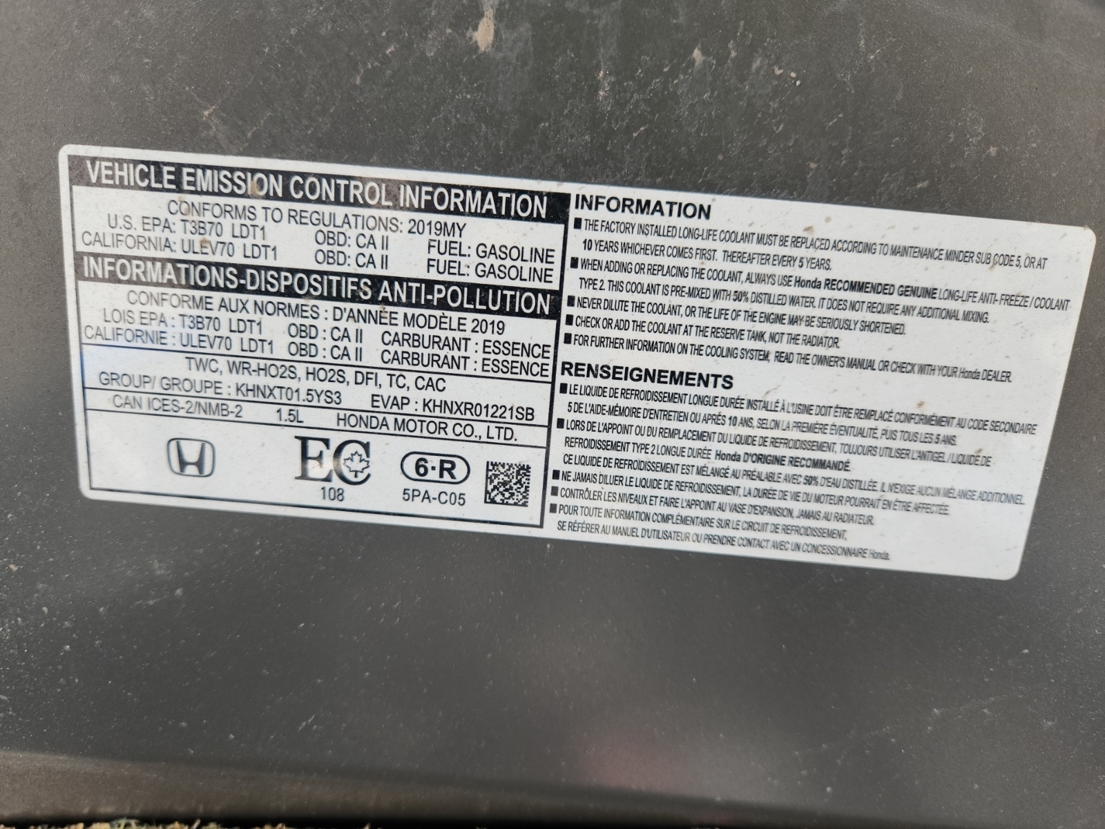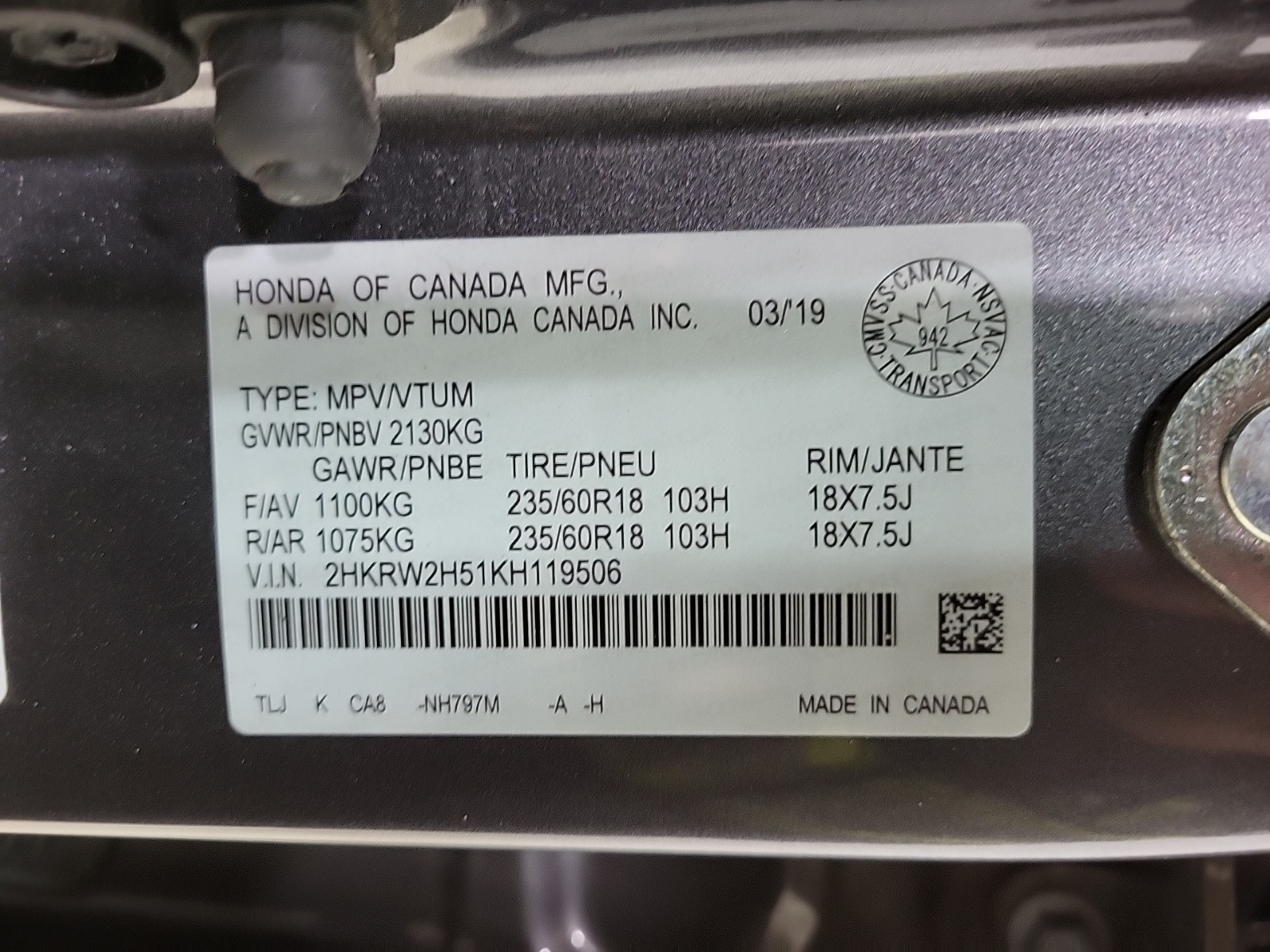 2HKRW2H51KH119506 |