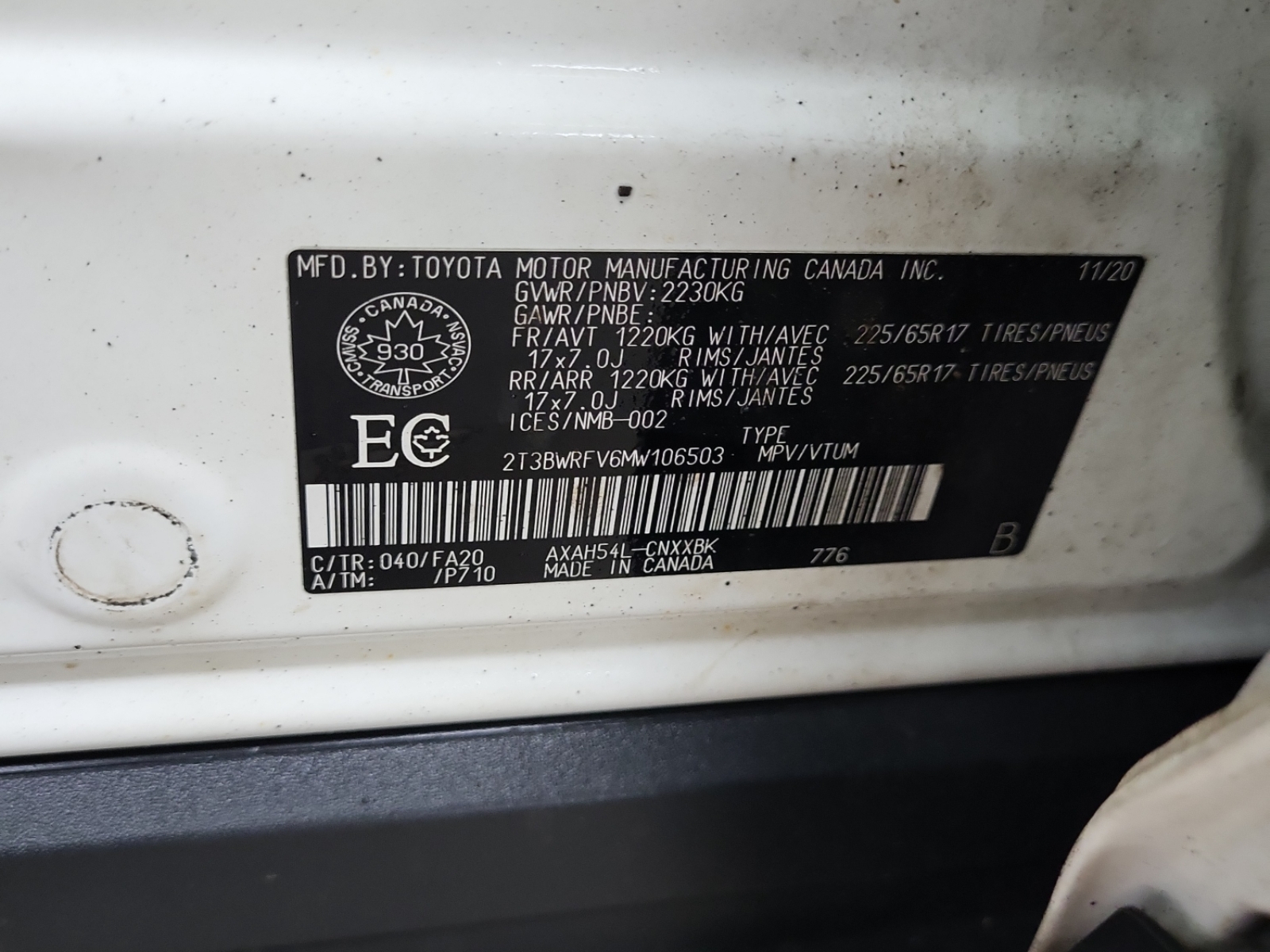 2T3BWRFV6MW106503 |