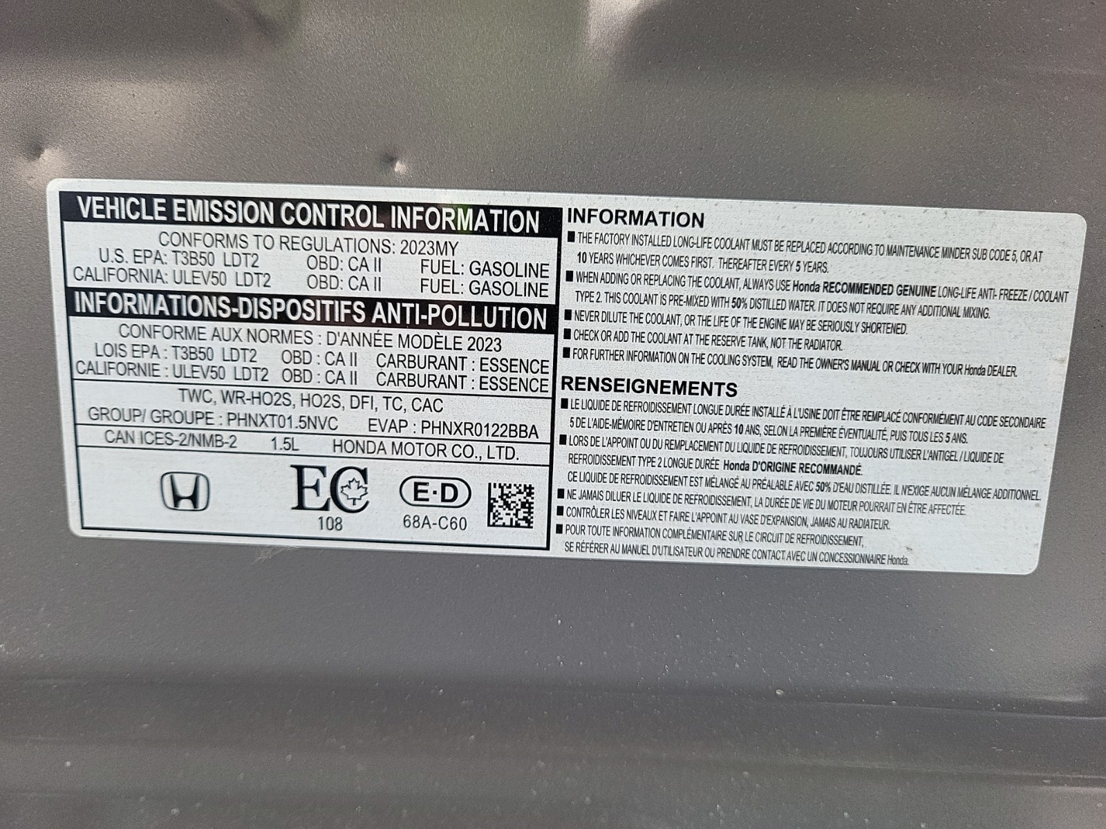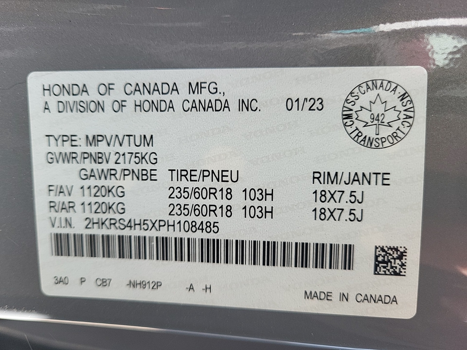 VENDU!!!! VENDU!!!! VENDU!!!!2023 HONDA CR-V SPORT, 2HKRS4H5XPH108485, Automatic Transmission , 1.5L 4CYL GASOLINE FUEL, All Wheel Drive